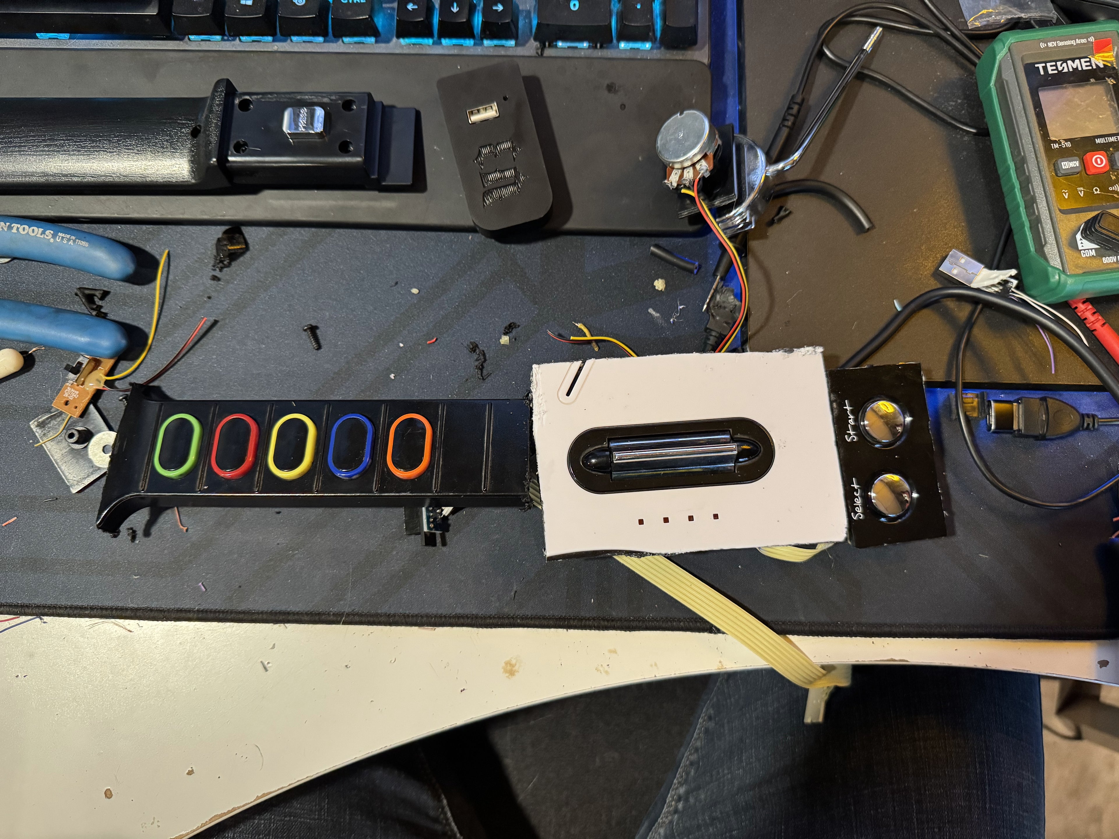 Posting photos of this creation on the Clone Hero subreddit, multiple people messaged me asking if they could buy this one-off prototype from me. Seeing the interest, I decided I should try and look into making some sort of portable guitar hero controller product, much better compared to this prototype (which I still have).