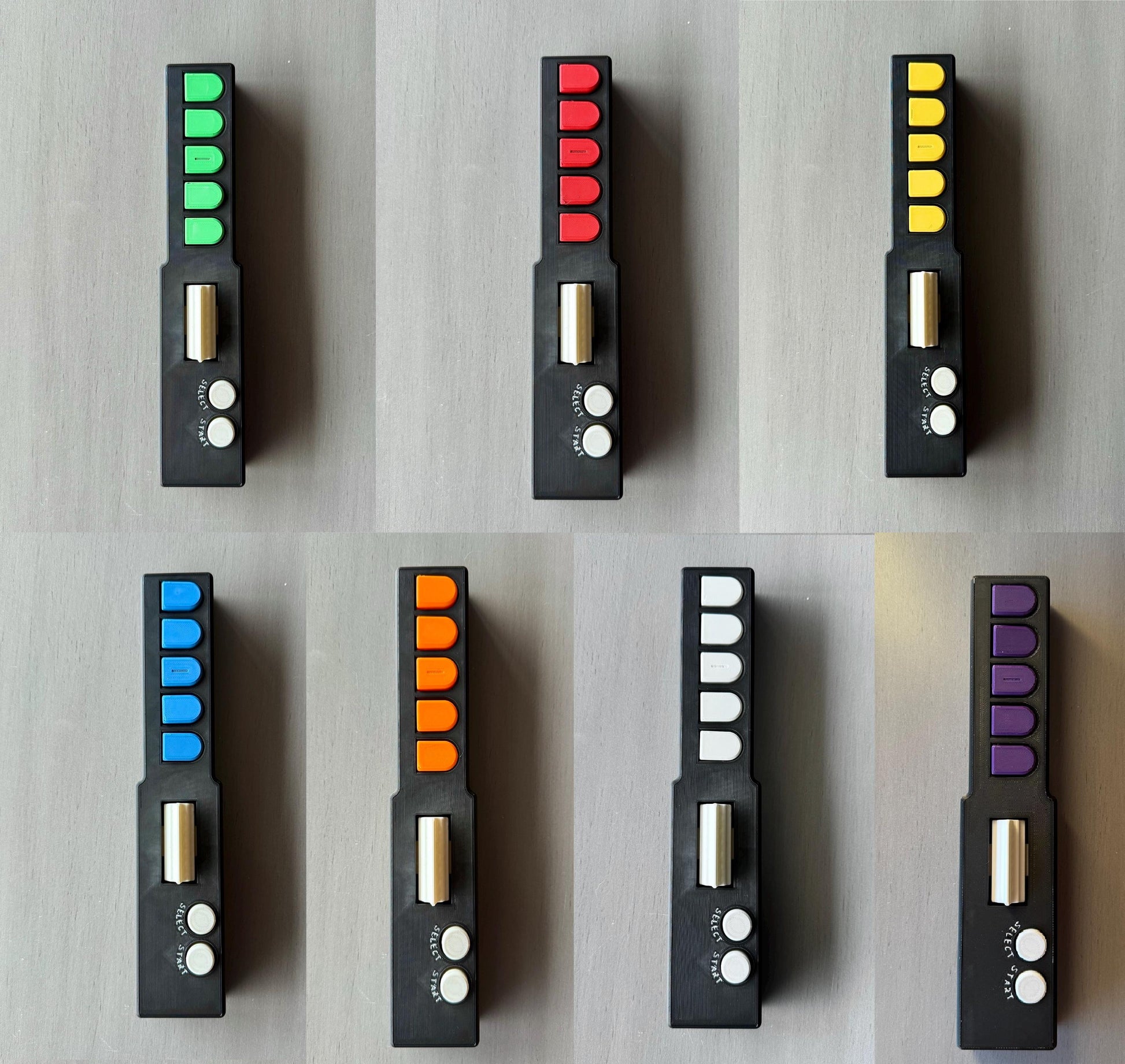 At this time, I am only offering a black body, white Strum bar, White Start Select, but custom Fret colors!